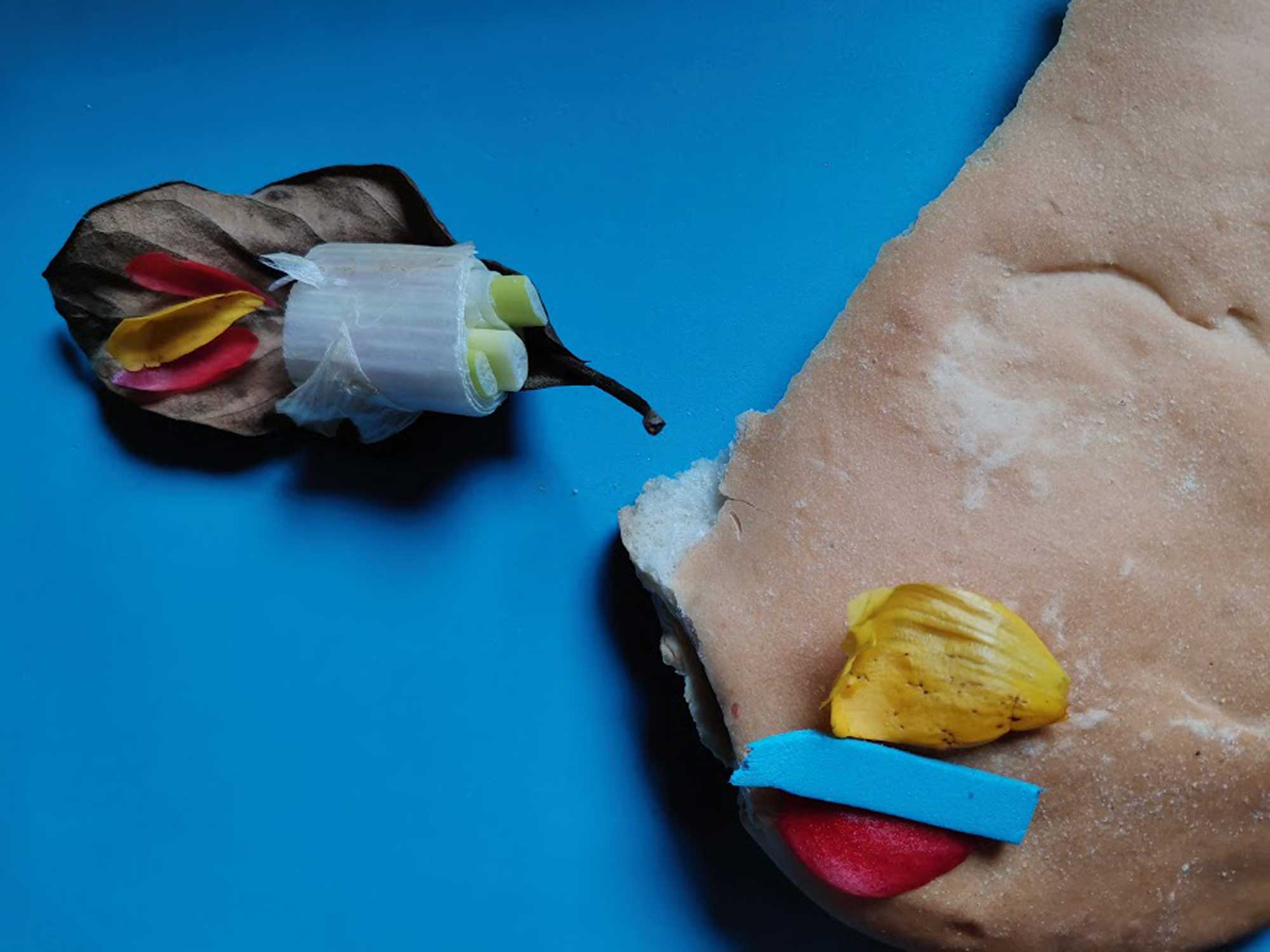 Esta imagen muestra cómo los conocimientos de cocina y especias entran a territorio americano, se tienen elementos que provienen de España (traídos por los españoles) como lo es la cebolla y también el eucalipto, la hoja de eucalipto representa el barco donde llegaron los españoles, y el calao representa a Colombia, ya que el calao es muy típico en Colombia. Lo que quiero mostrar la llegada de nuevos conocimientos a América.